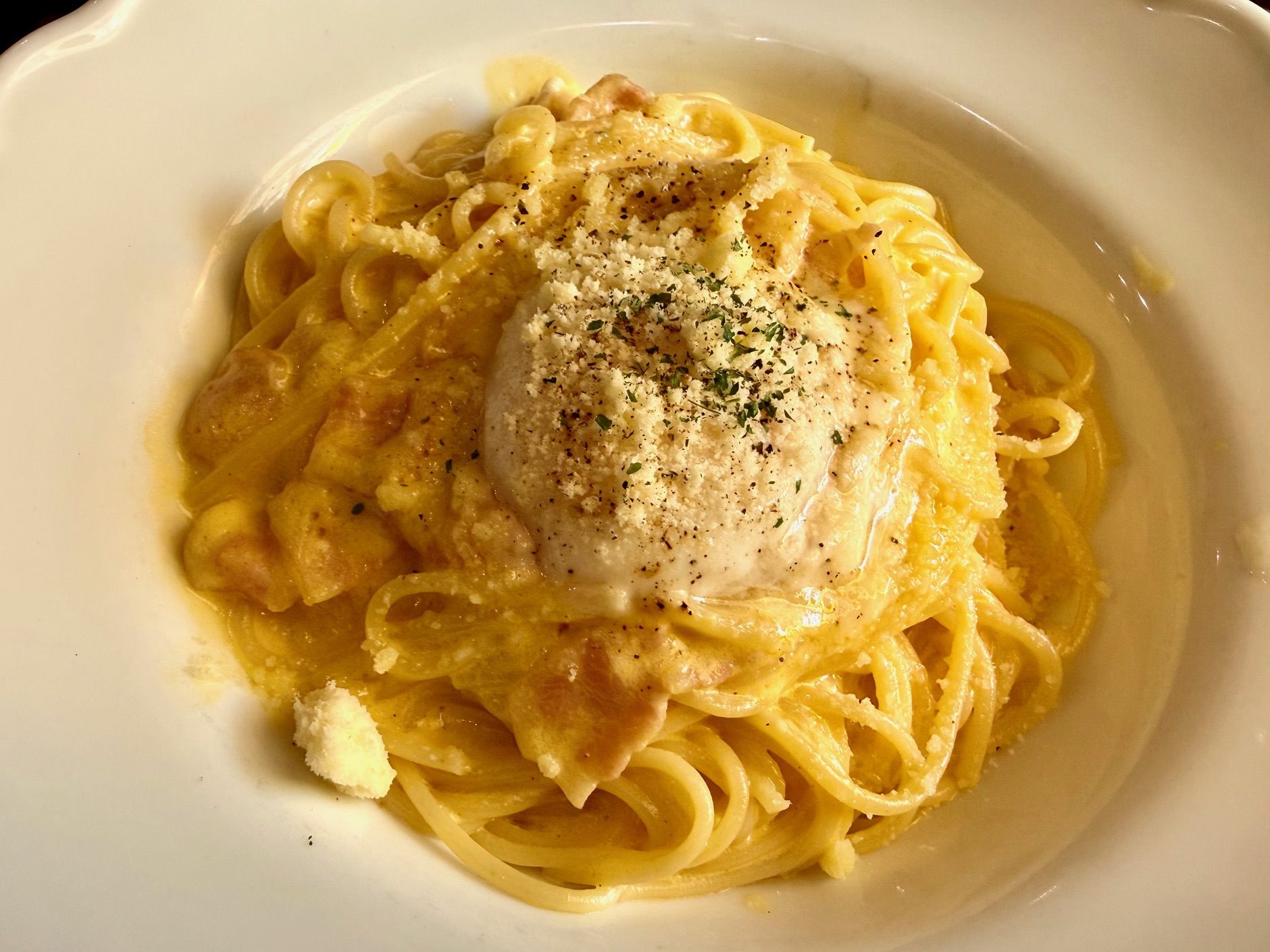 温泉玉子の濃厚カルボナーラ ★★★★☆☆☆☆☆☆ 4star