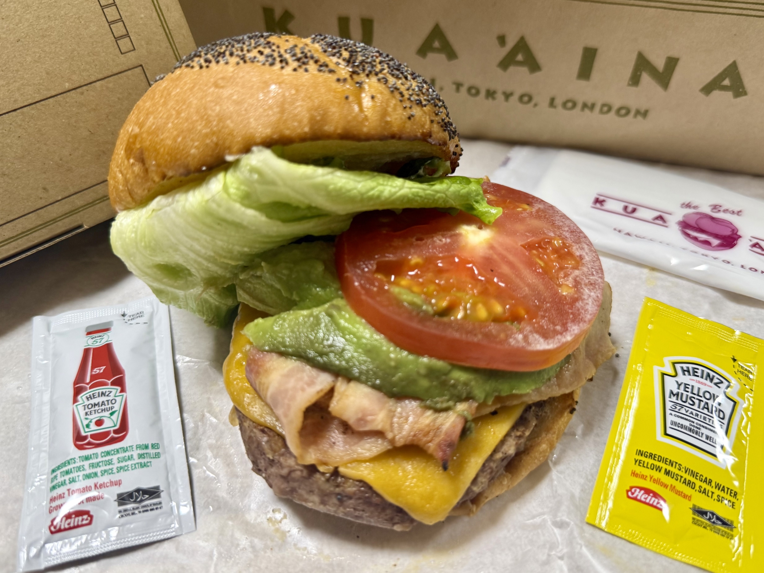 口コミ: パティ上に輝くチェダー、黒い粒々ケシの実のカイザーロールでBLT・完熟アボカドも一緒に挟みハワイ気分。