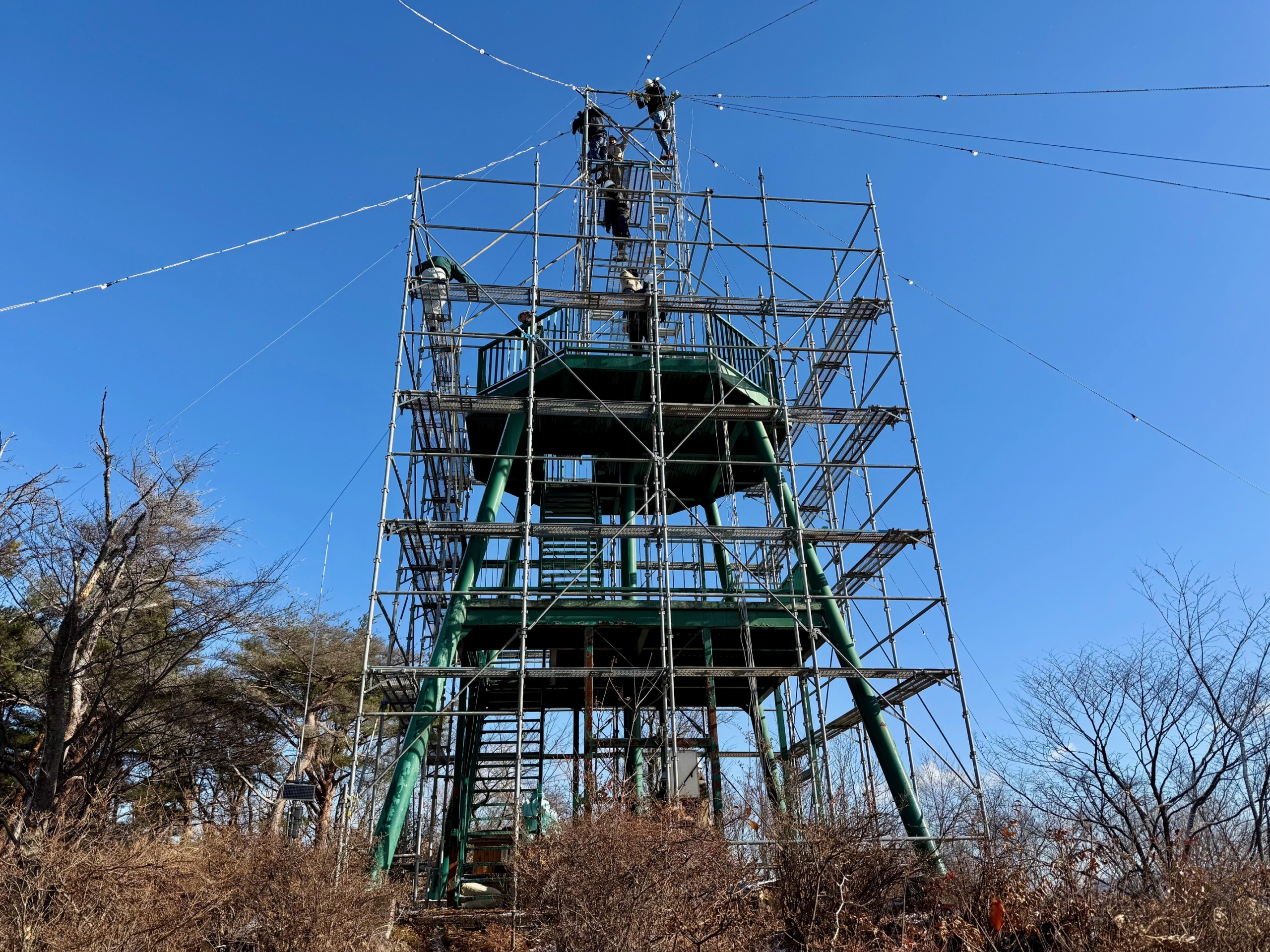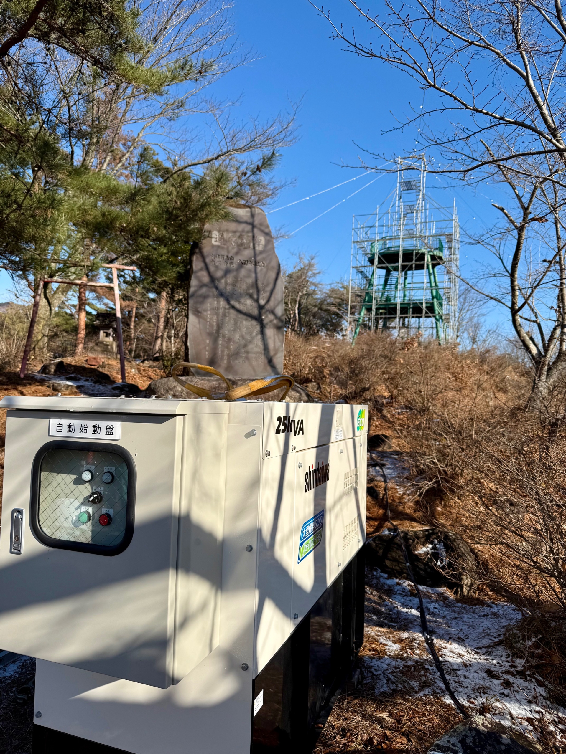 国見町の冬の風物詩 ”あつかし山 ビッグツリー”の開催に向けて、イルミネーションの設営を行いました。